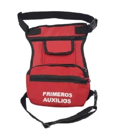 Botiquín de primeros auxilios tipo piernera, compacto y de acceso rápido para atención en movimiento por brigadistas, paramédicos y personal de seguridad.