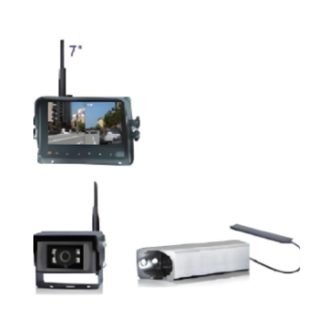 Cámaras de seguridad vehicular y perimetral para operación industrial y flotas, con opciones cableadas o inalámbricas y monitoreo en pantalla de 7” para eliminar puntos ciegos y mejorar maniobras.