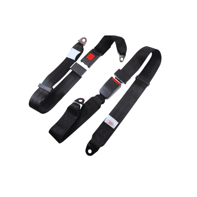 Cinturones de seguridad para vehículos industriales y de flota, fabricados en reata de alta resistencia con hebilla de liberación rápida y anclajes metálicos, diseñados para retener al operador y reducir riesgos en frenadas o vuelcos.