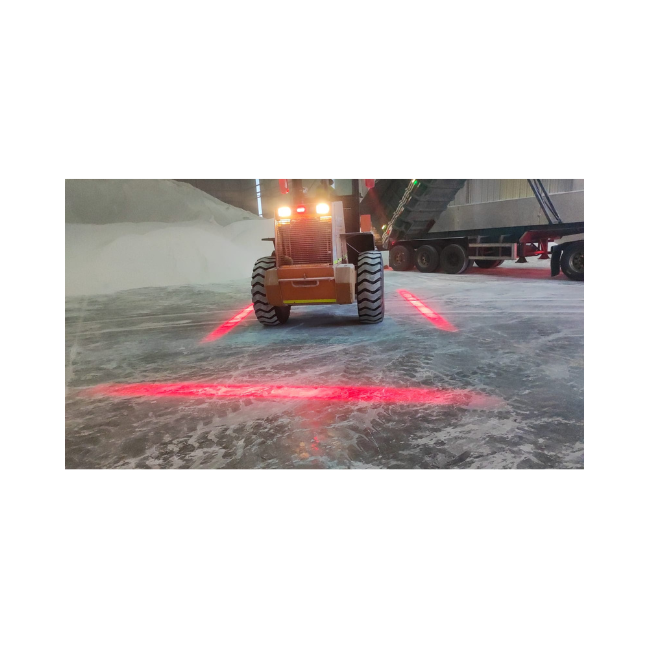 Lámparas de línea LED para proyectar franjas luminosas en el piso que delimitan carriles y zonas de seguridad alrededor de montacargas y equipos móviles, aumentando la visibilidad en pasillos y cruces.